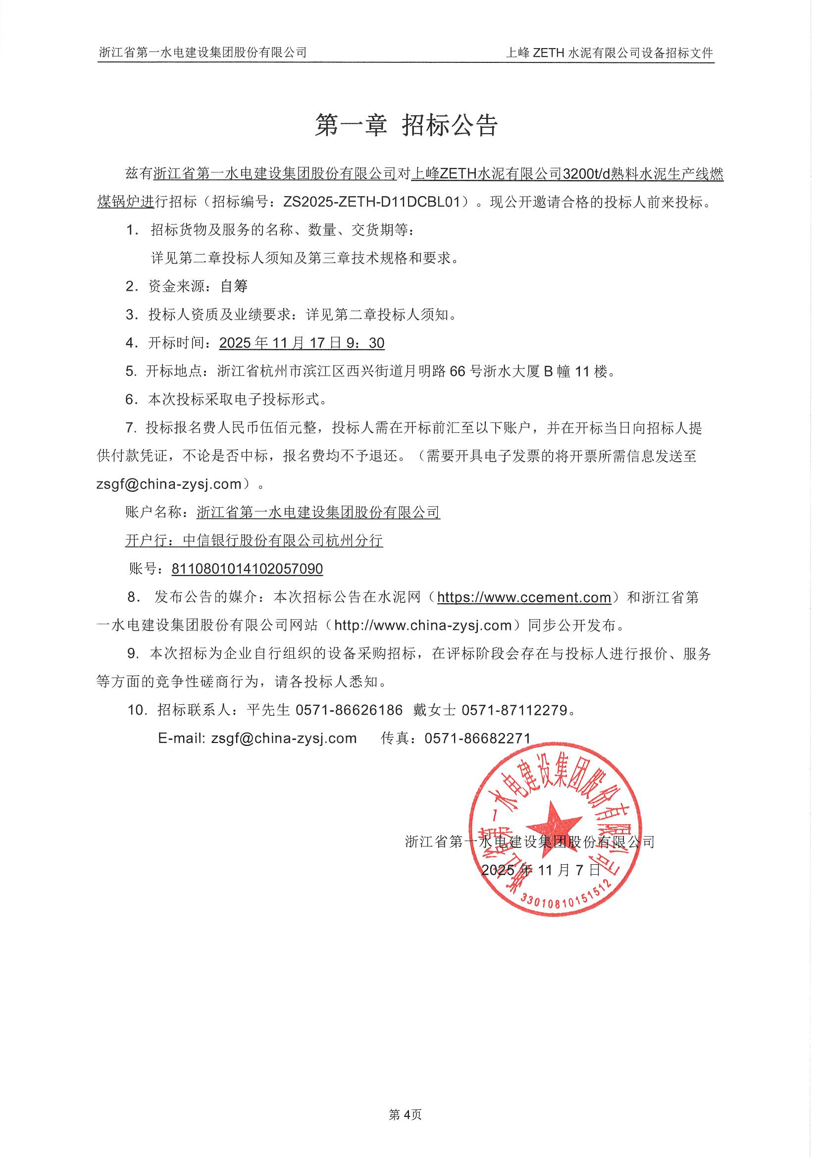 上峰ZETH水泥有限公司3200t/d熟料水泥生產(chǎn)線燃煤鍋爐招標(biāo)公告